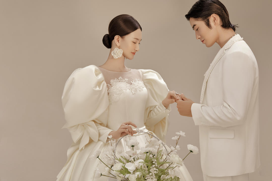 纯色背景简约韩系婚纱照